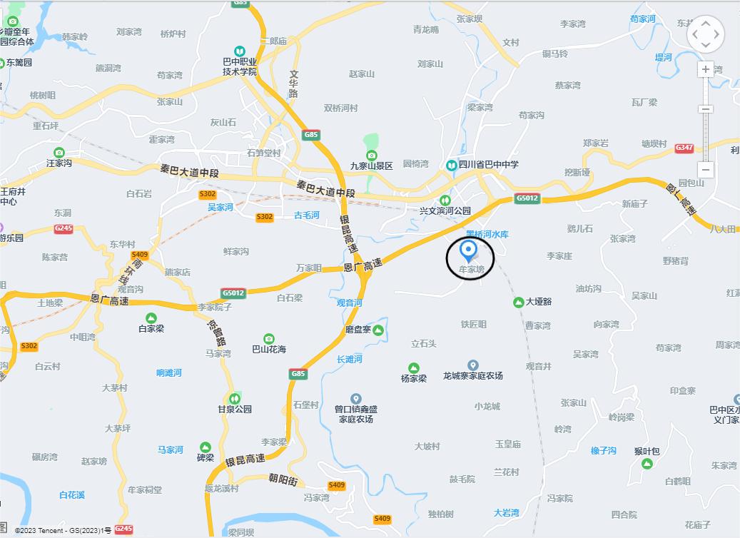 巴中糧食現代物流園區(巴中市巴中興文經(jīng)開(kāi)區規劃14路中營(yíng)村牟家塝),見(jiàn)地圖圓圈位置。